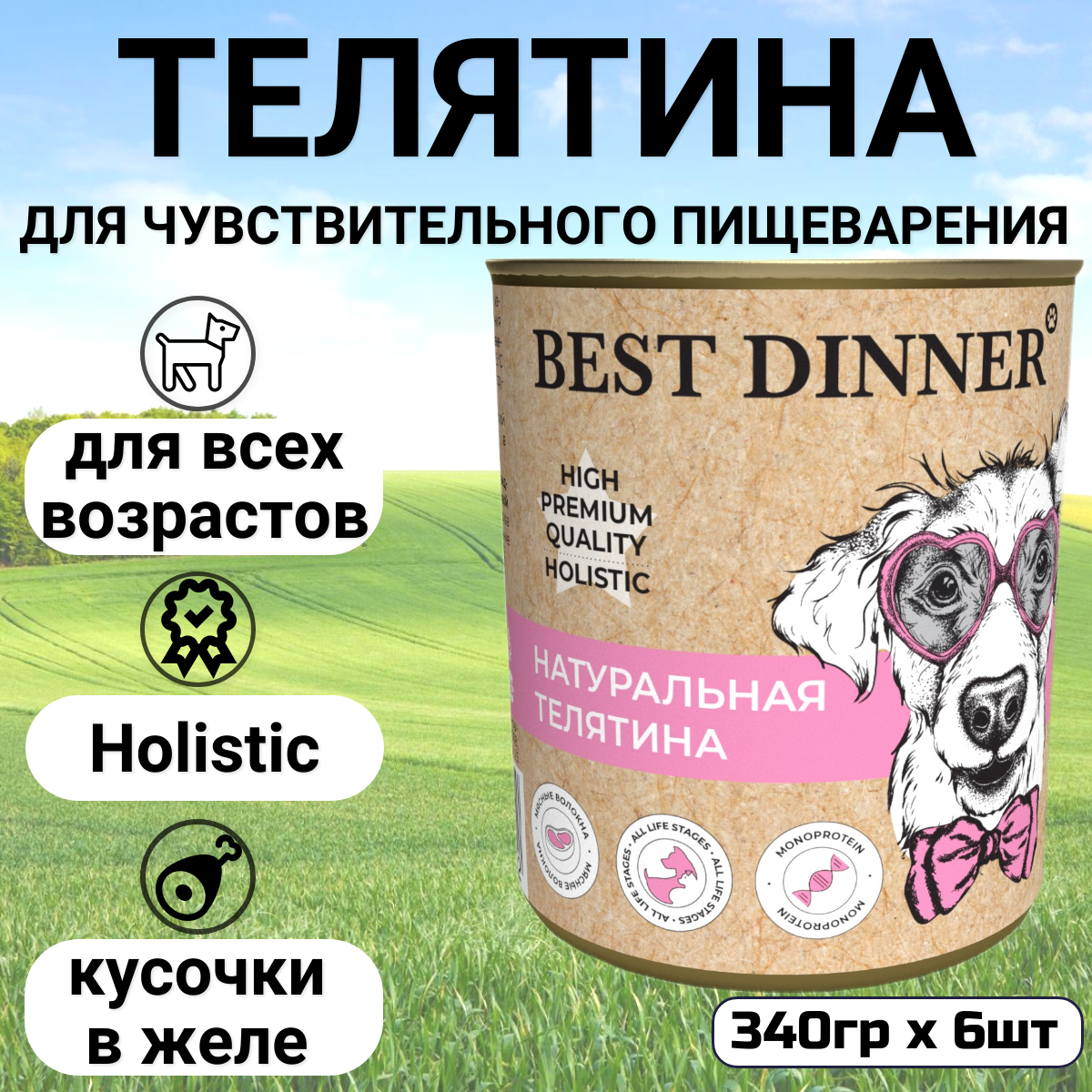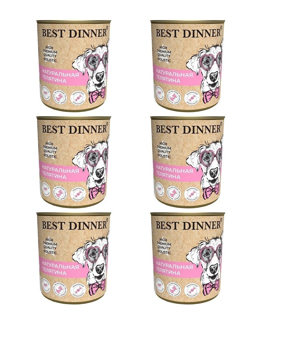 Best Dinner Бест Диннер консервы для собак High Premium, Натуральная телятина, 340 гр. по 6 шт.