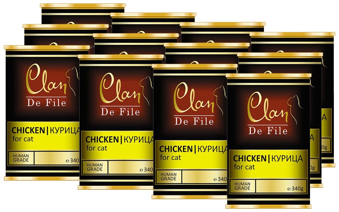 Влажный корм для кошек CLAN De File, с курицей 12 шт. х 340 г (паштет)