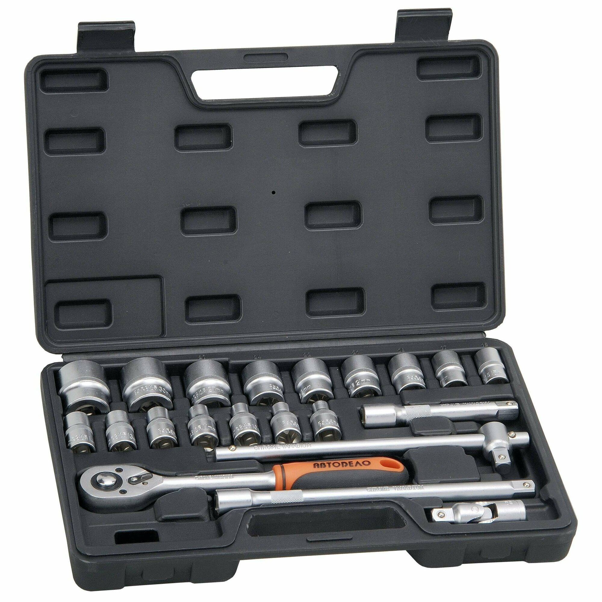 Инструменты, набор "АвтоДело" 1/2". 21пр., головки 8-32мм, трещотка,вороток,удлинитель, кардан