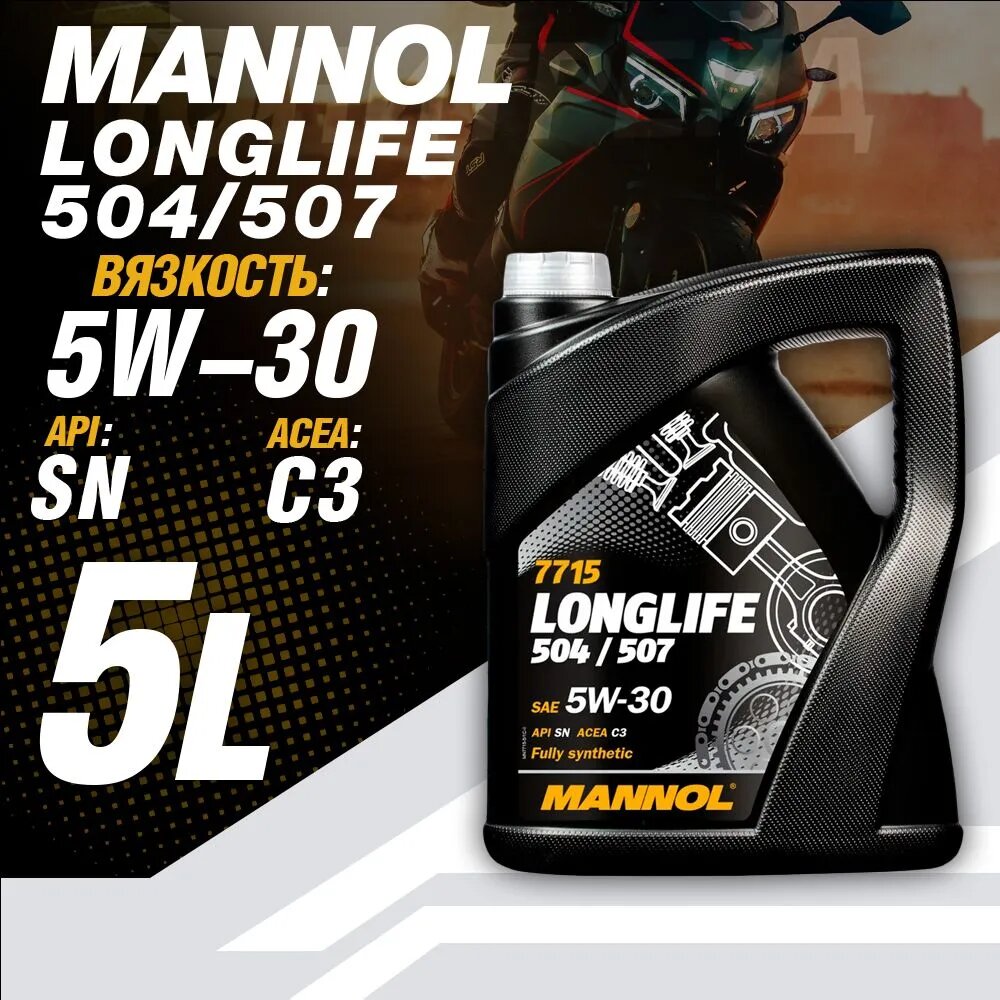 Синтетическое моторное масло Mannol 7715 Longlife 504/507 5W-30, 1 л, 1 кг, 1 шт