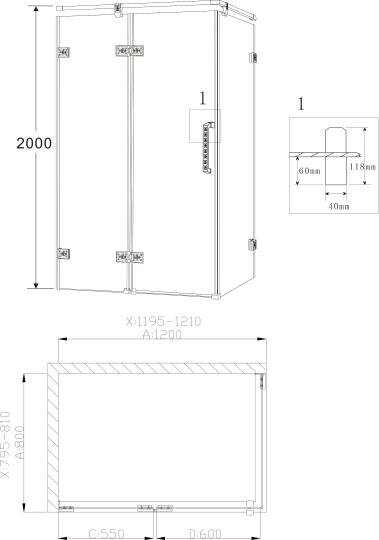 | Дополнительная информация | материал профиля - нержавеющая сталь; толщина стекол: стенки - 5 мм, створки дверей - 6 мм |