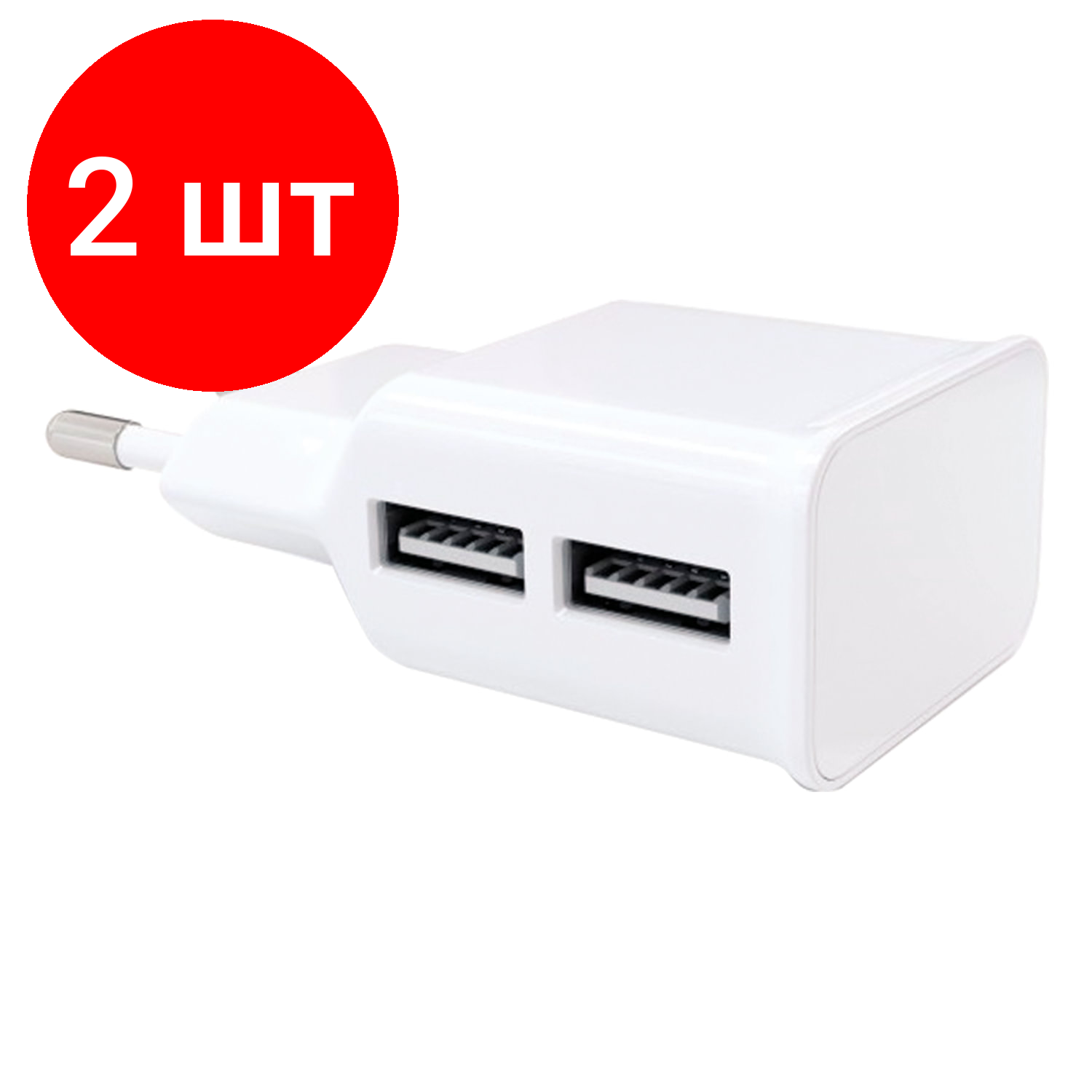 Комплект 2 штук, Зарядное устройство сетевое, 2 USB, 2.1А, Red Line NT-2A, бел, УТ000009405