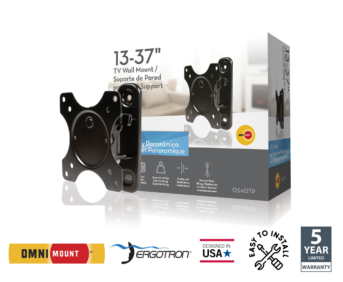 Купить Кронштейн на стену OmniMount OS40TP для телевизора 13"- 37", наклонно-поворотный, до 18,1 кг, чёрный