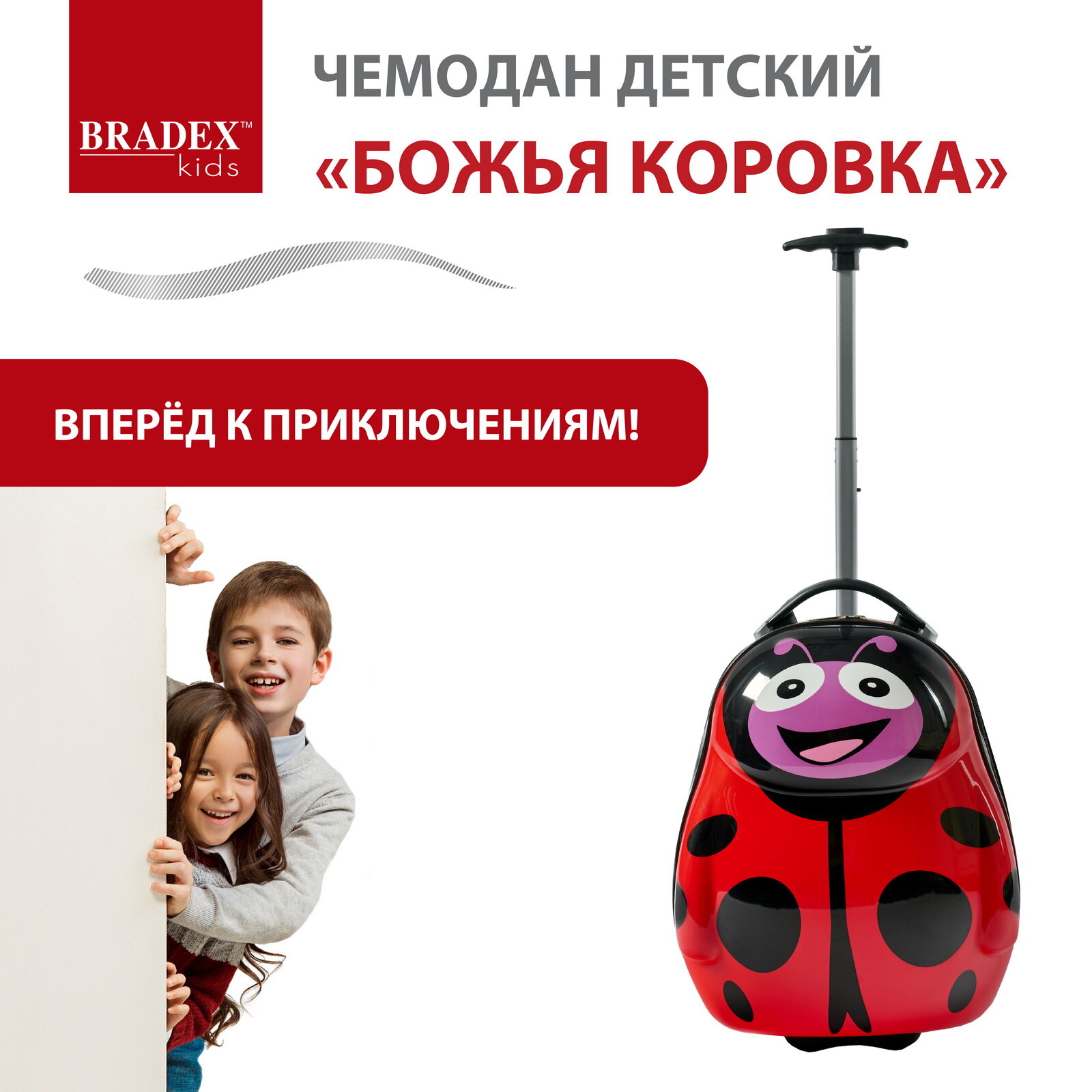 Чемодан на колесах детский ручная кладь "Божья коровка" Bradex, для мальчиков, девочек, дорожный с телескопической ручкой