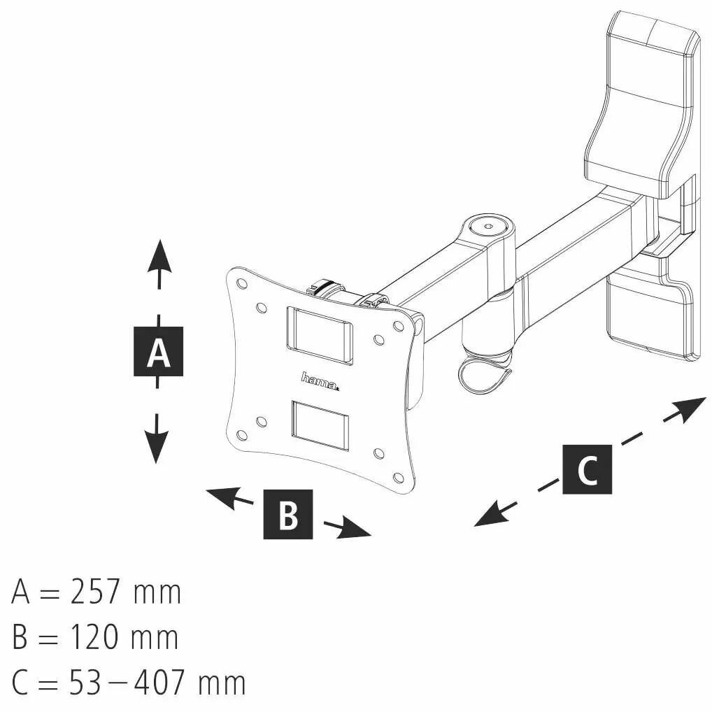 | Дополнительная информация | расстояние от стены от 5.3 см до 40.7 см; угол наклона вниз - 15° и вверх +5°; угол поворота влево/вправо 180°; вращение до 3° |