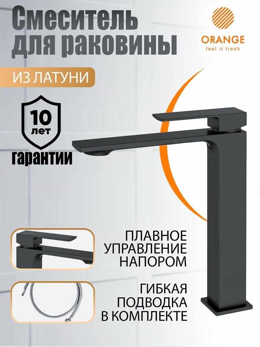 Смеситель для раковины, для накладной раковины, высокий Orange Lutz M04-121b, черный