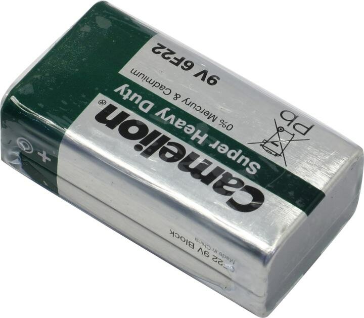 Батарейка Super Heavy Duty "Крона" 9V от бренда Camelion, типоразмер 6F22, 1 шт.