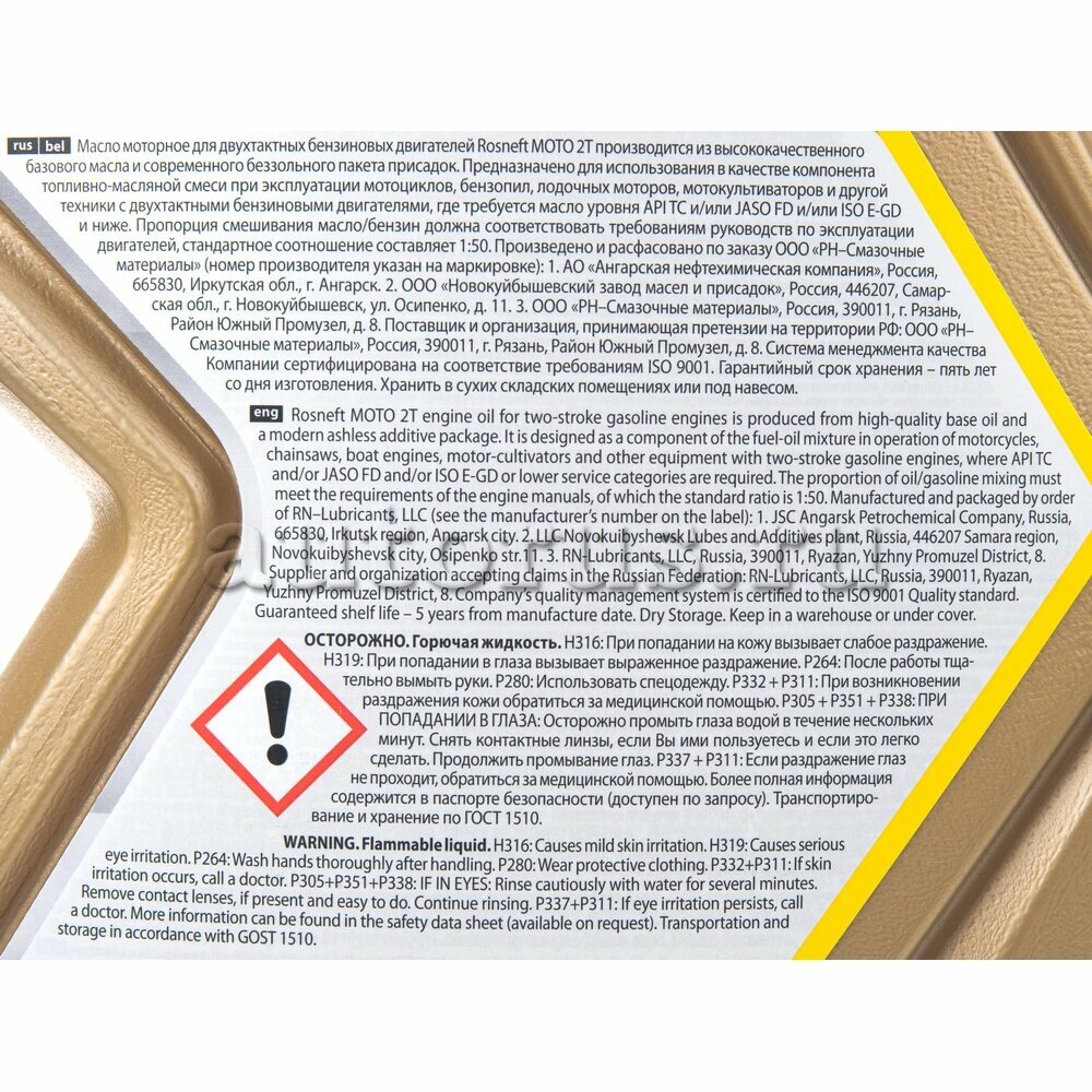 Минеральное моторное масло Роснефть MOTO 2T, 4 л, 3.7 кг