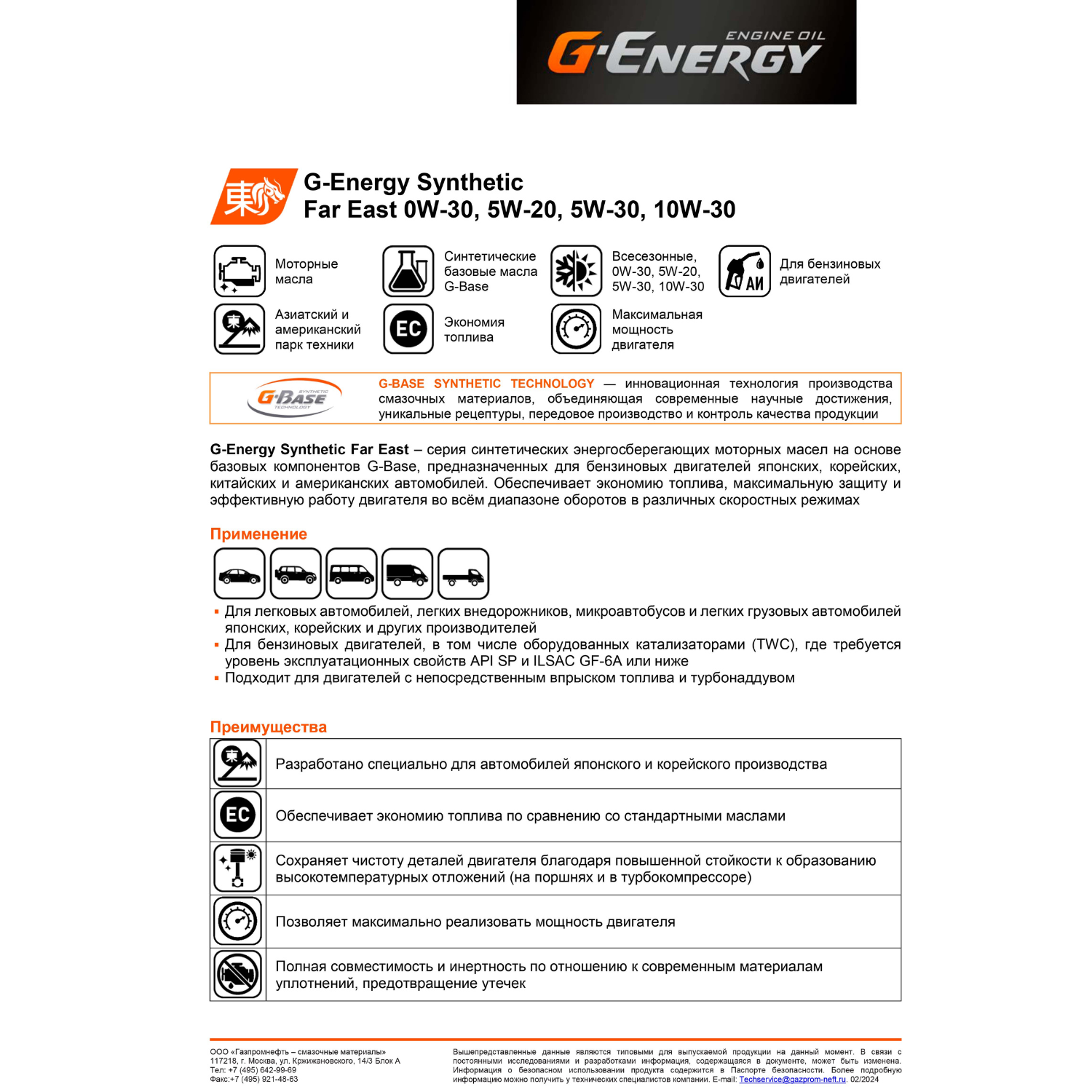 GAZPROMNEFT 253142414 Масо моторное Synthetic Far East GF-6A/SN/SP 5W30 синт.1 G-ENERGY