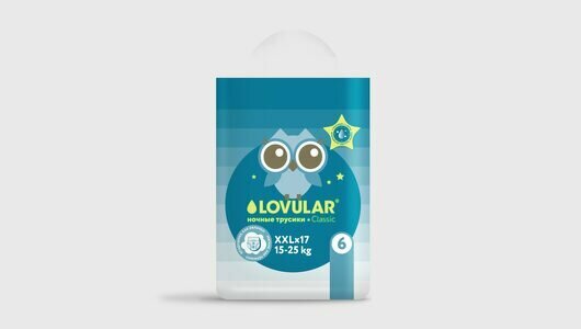 Трусики - подгузники Classic ночные LOVULAR XXL, 15-25 кг. 17 шт/уп