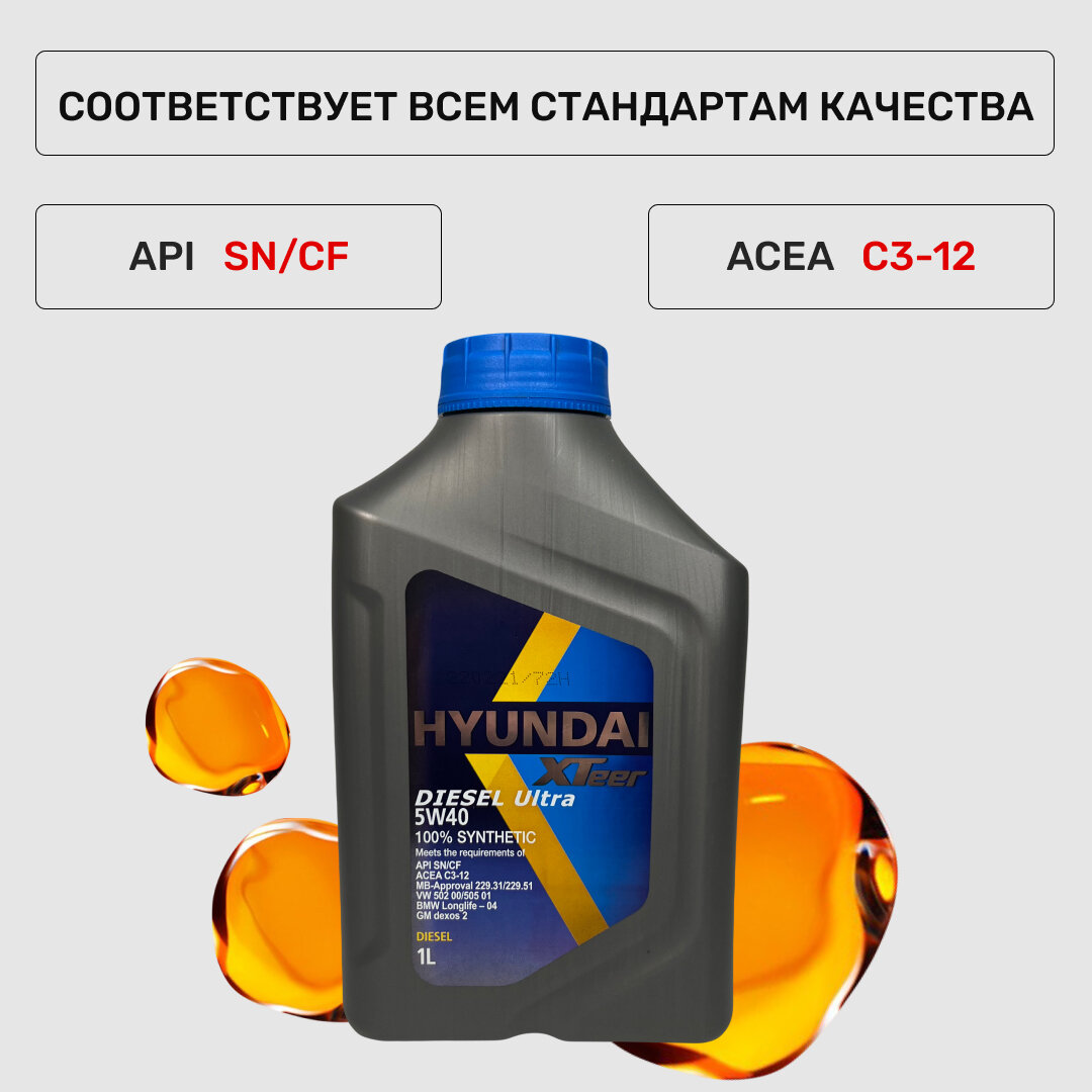 HYUNDAI-XTEER 1011223 HYUNDAI XTeer Diesel Ultra 5W40 (1L)_масло моторн.! синт.\ API SN, ACEA C3, MB 229.31, BMW LL-04