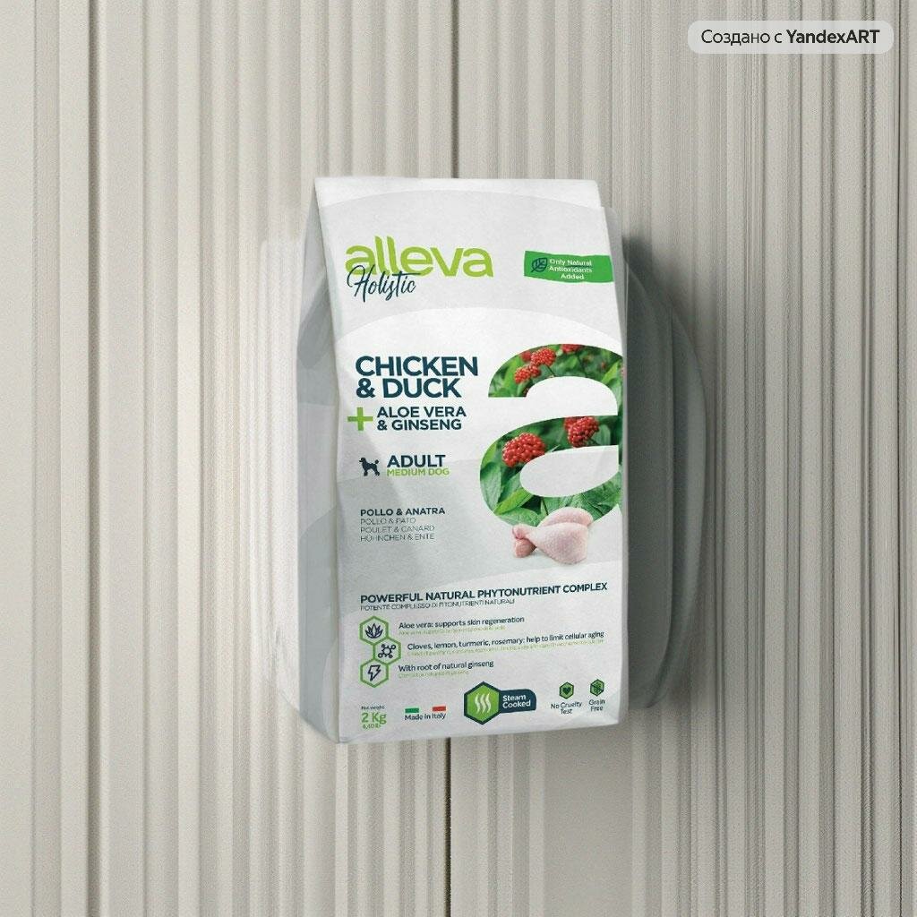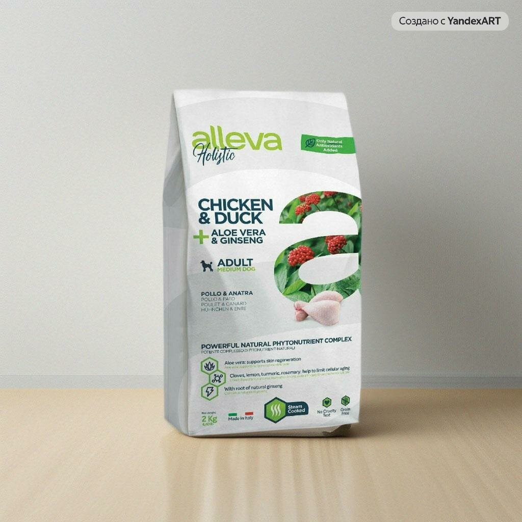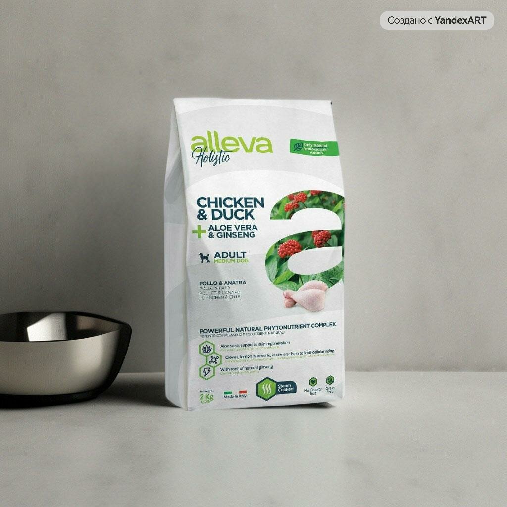 ALLEVA HOLISTIC ADULT DOG MEDIUM CHICKEN & DUCK беззерновой для взрослых собак средних пород с курицей, уткой, алоэ вера и женьшенем (12 кг)