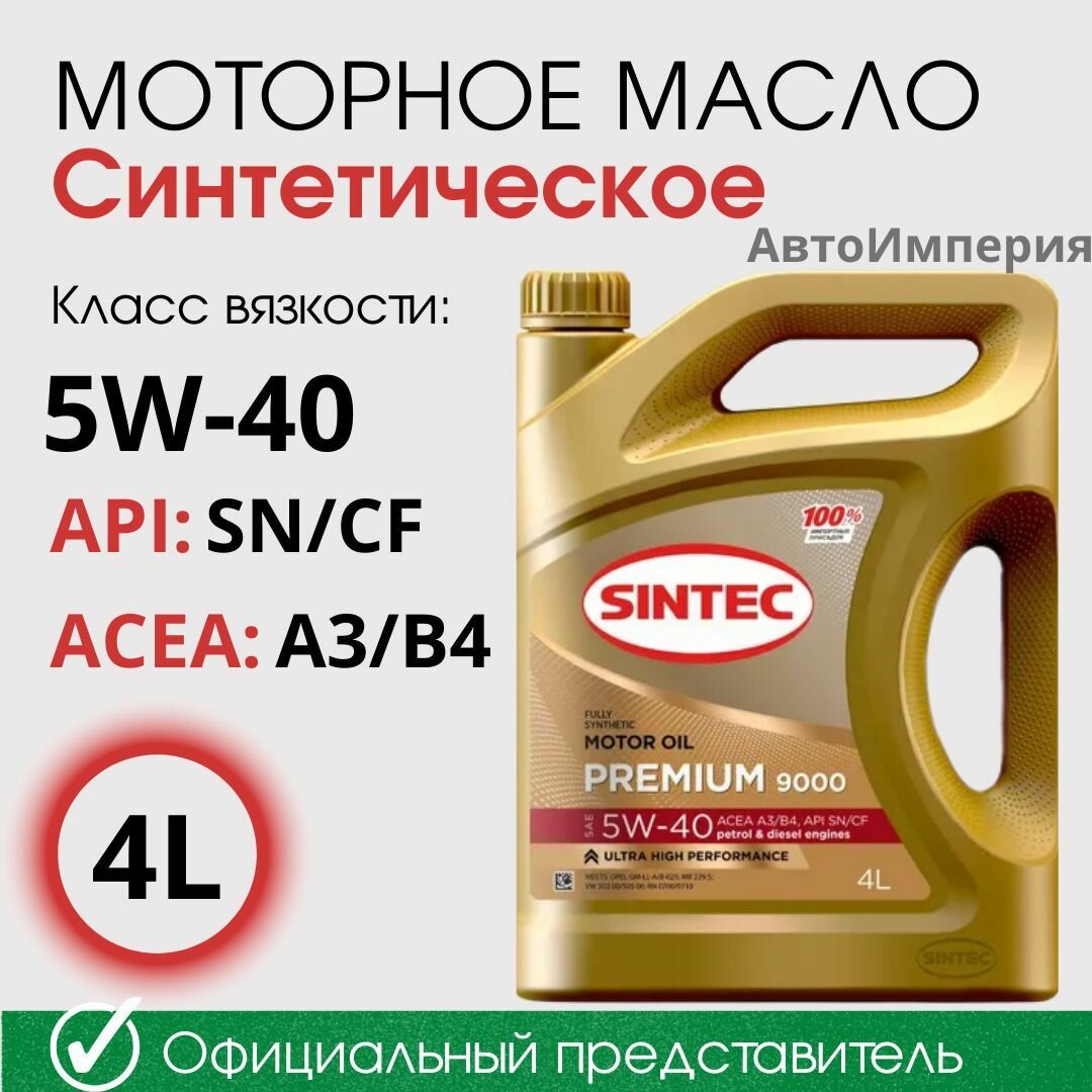 Sintec Моторное масло синтетическое PREMIUM 9000 SAE 5W-40 API SN, ACEA A3/B4 4 л 600107