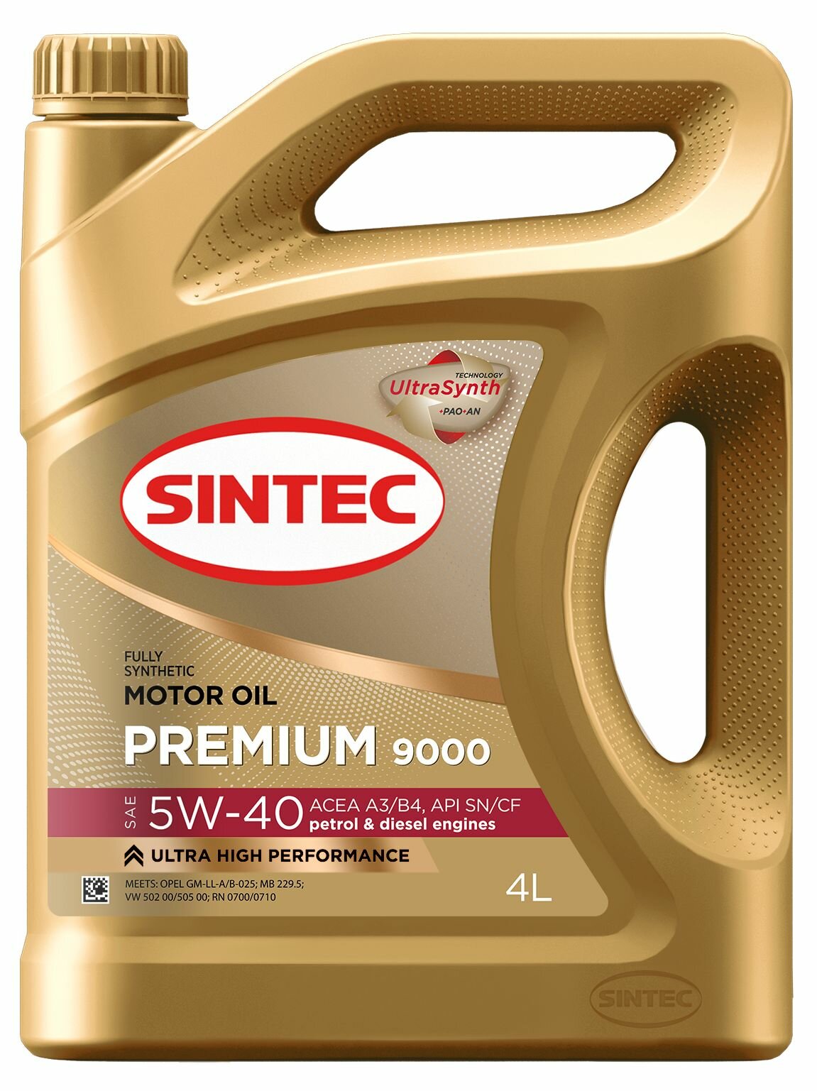 SINTEC Масло Sintec Premium 9000 5W-40 A3/B4 Sn/Cf 4Л (Старый Арт. 801971)