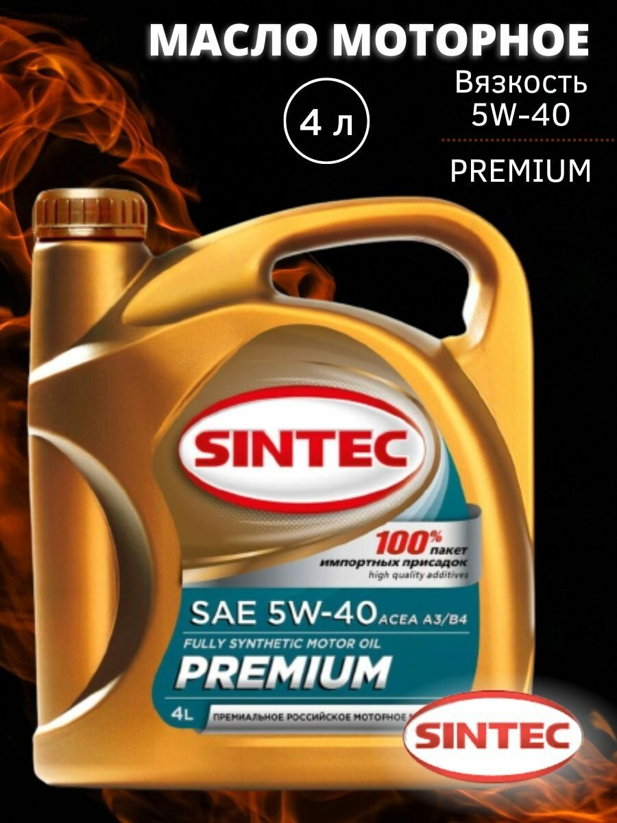Sintec Моторное масло синтетическое Premium SAE 5W-40 API SN, Acea A3/B4 4 л 801971 .