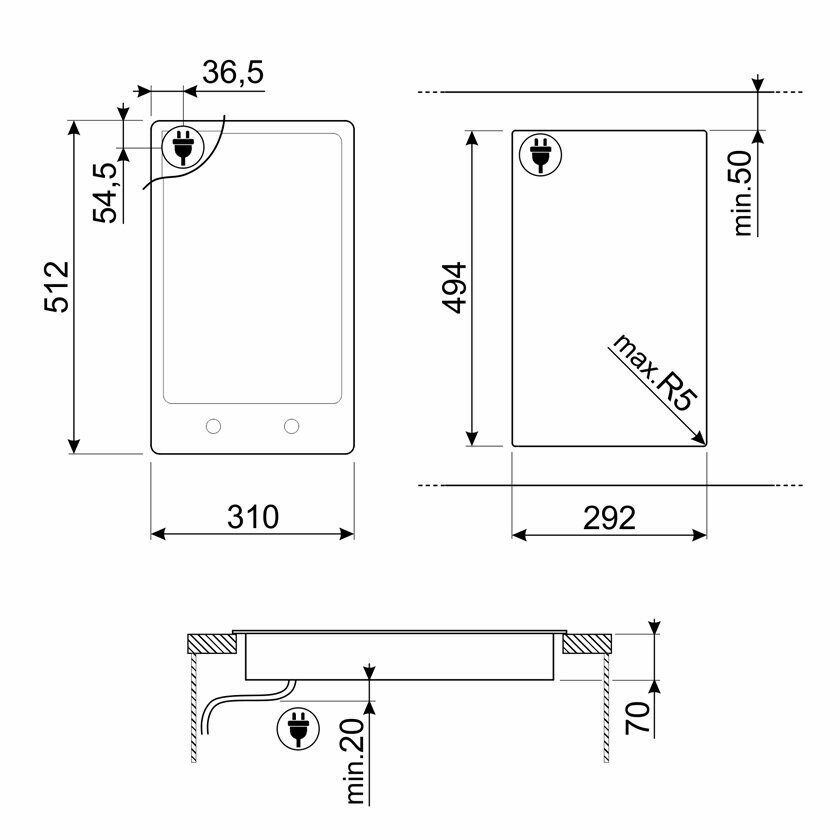 | Безопасность | защитное отключение конфорок / кнопка блокировки панели / индикатор остаточного тепла |