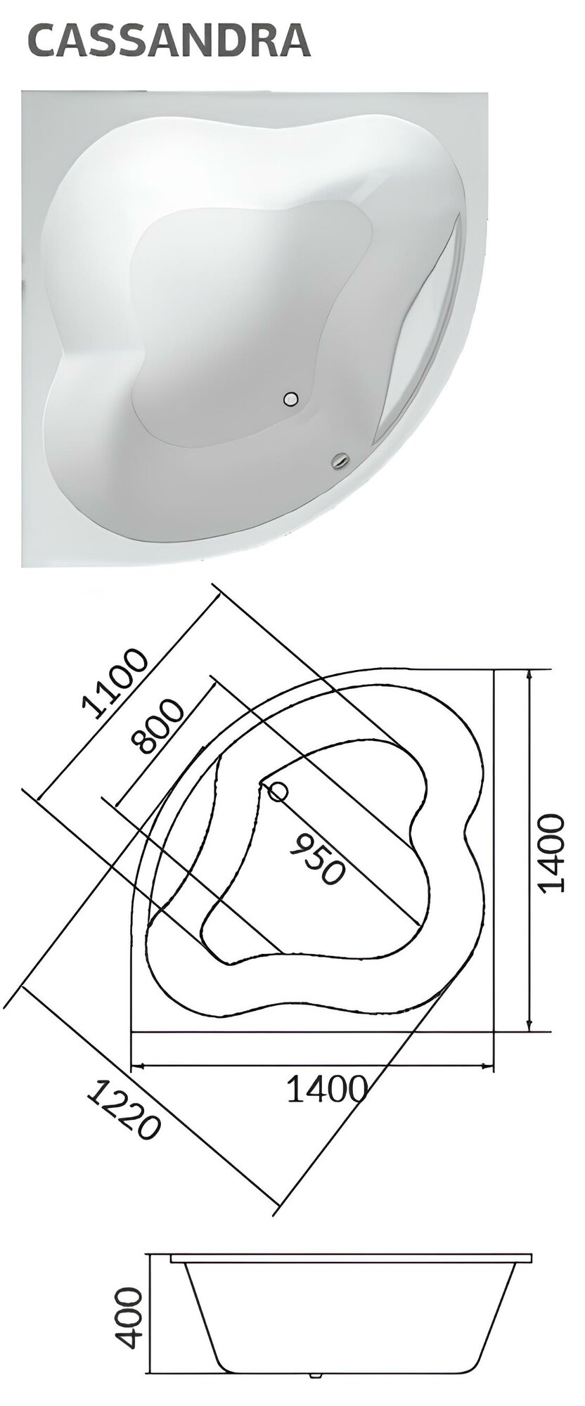 Акриловая ванна угловая 1Marka CASSANDRA 140x140 интересное: