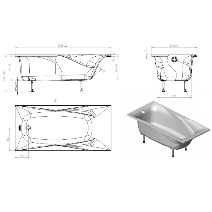 Ванна Astra-Form Вега Люкс 170х80 С ножкам, литьевой мрамор интересное: