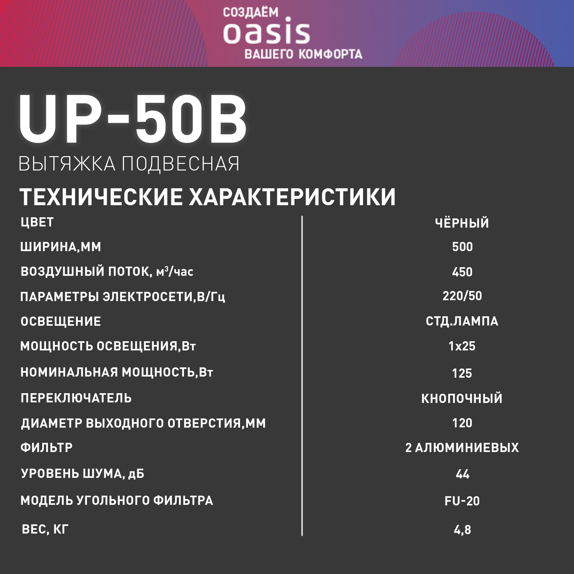 Вытяжка кухонная 50 см подвесная making Oasis everywhere UP-50B интересное: