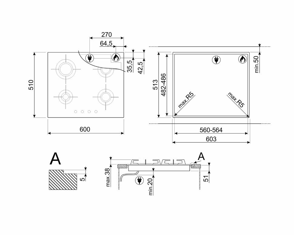 | Ширина для встраивания | 56 см |