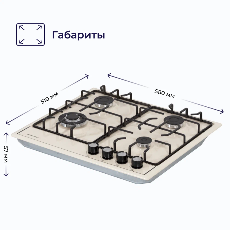 Газовая варочная панель DELVENTO V60V41R001 60 см, WOK-конфорка, бежевый