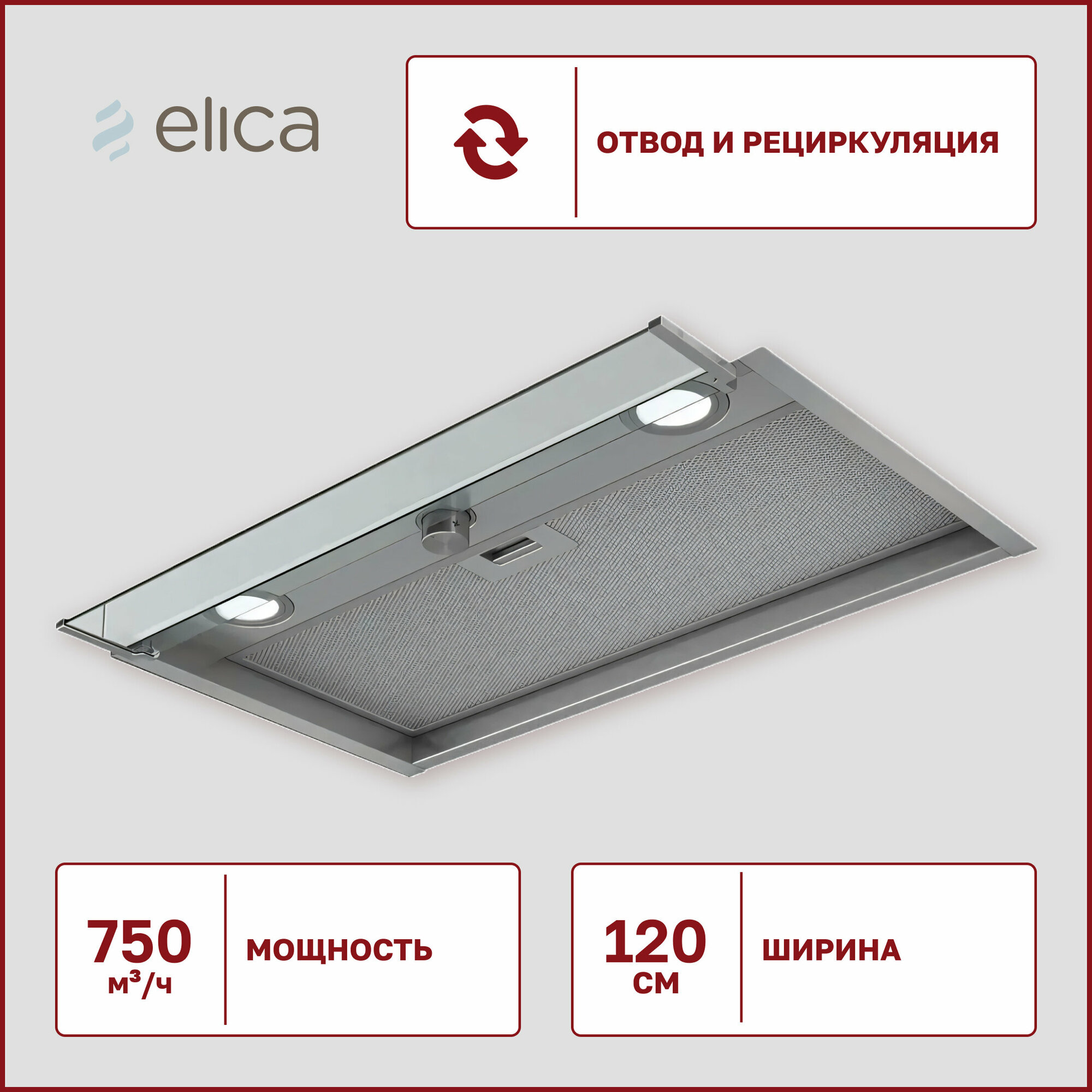 Вытяжка встраиваемая Elica Boxin LX/IX/A/120 серебристый управление: поворотный переключатель (1 мотор)