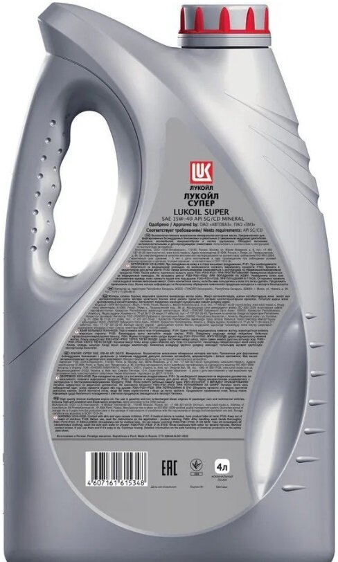 Минеральное моторное масло ЛУКОЙЛ Супер SG/CD 15W-40, 4 л, 4 кг, 1 шт