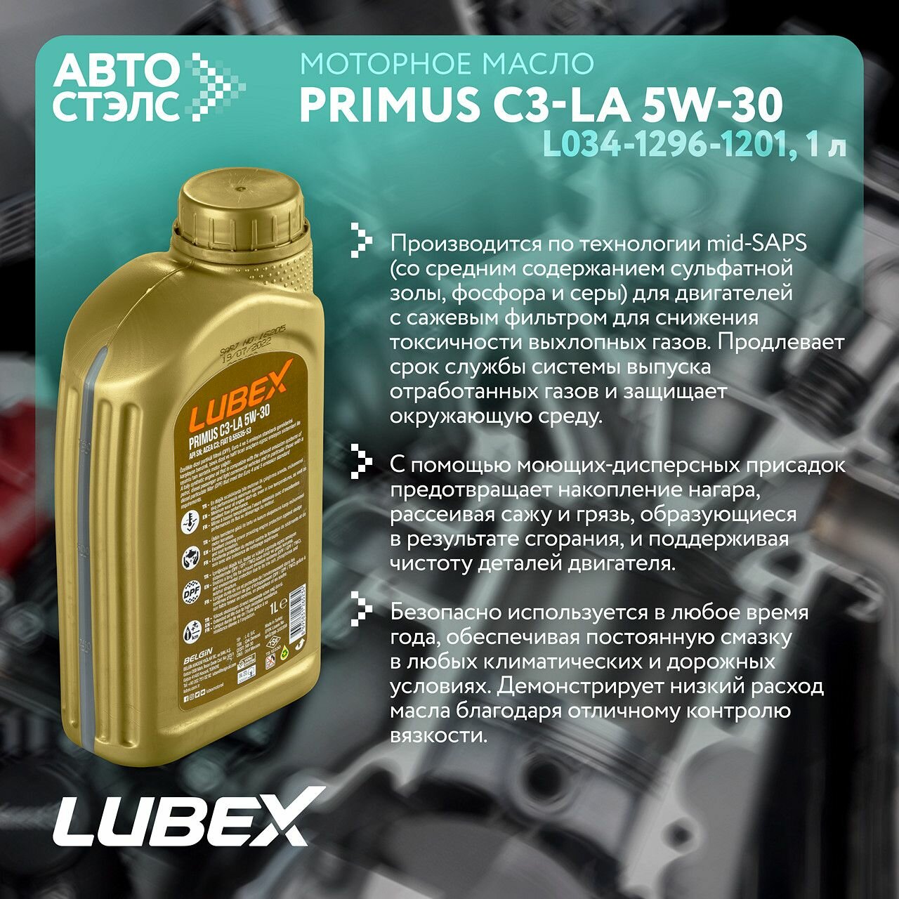 Масло моторное синтетическое PRIMUS C3-LA 5W-30 SN C3 1л LUBEX / арт. L03412961201 - (1 шт)