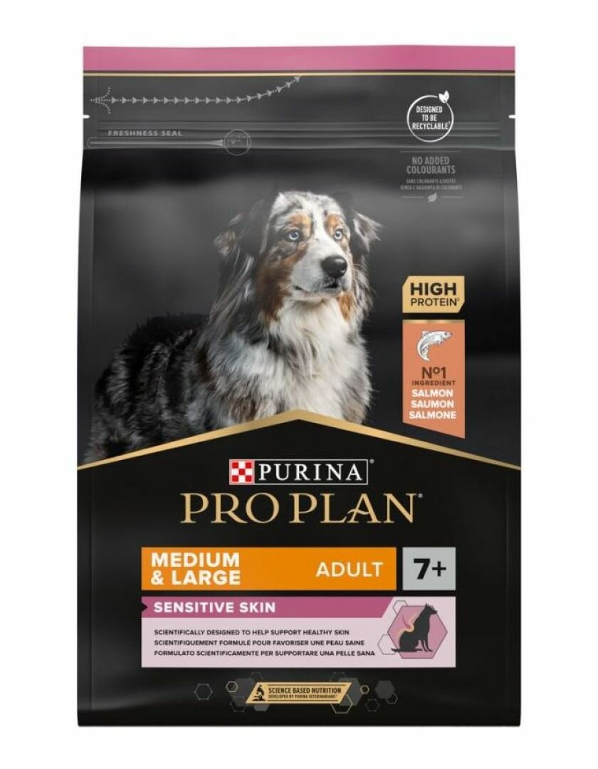 Сухой корм Pro Plan® для собак старше 7 лет средних и крупных пород с чувствительной кожей, с высоким содержанием лосося., Пакет, 3 кг