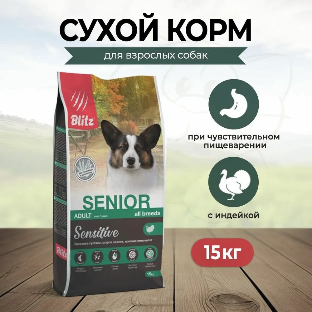 Купить Корм сухой BLITZ Sensitive Senior Dog All Breeds 15 кг для собак старше 7 лет (индейка) полнорационный