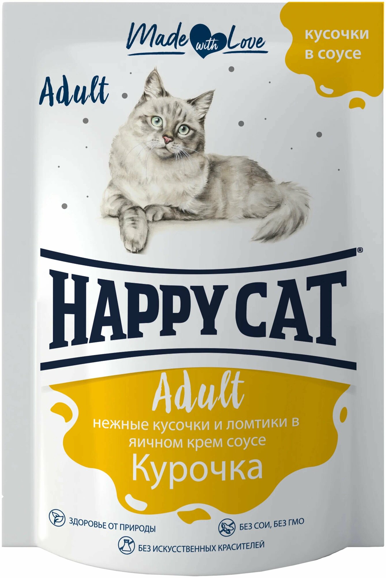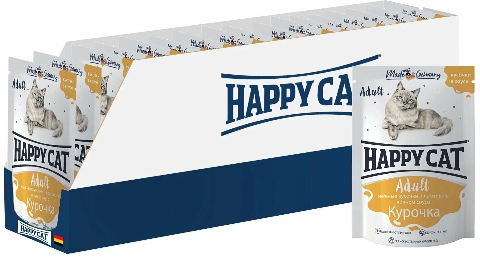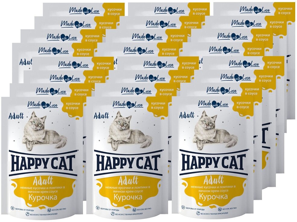 СохранитьHappy Cat паучи для взрослых кошек с курицей в соусе - 100 г х 24 шт (Россия) интересное: