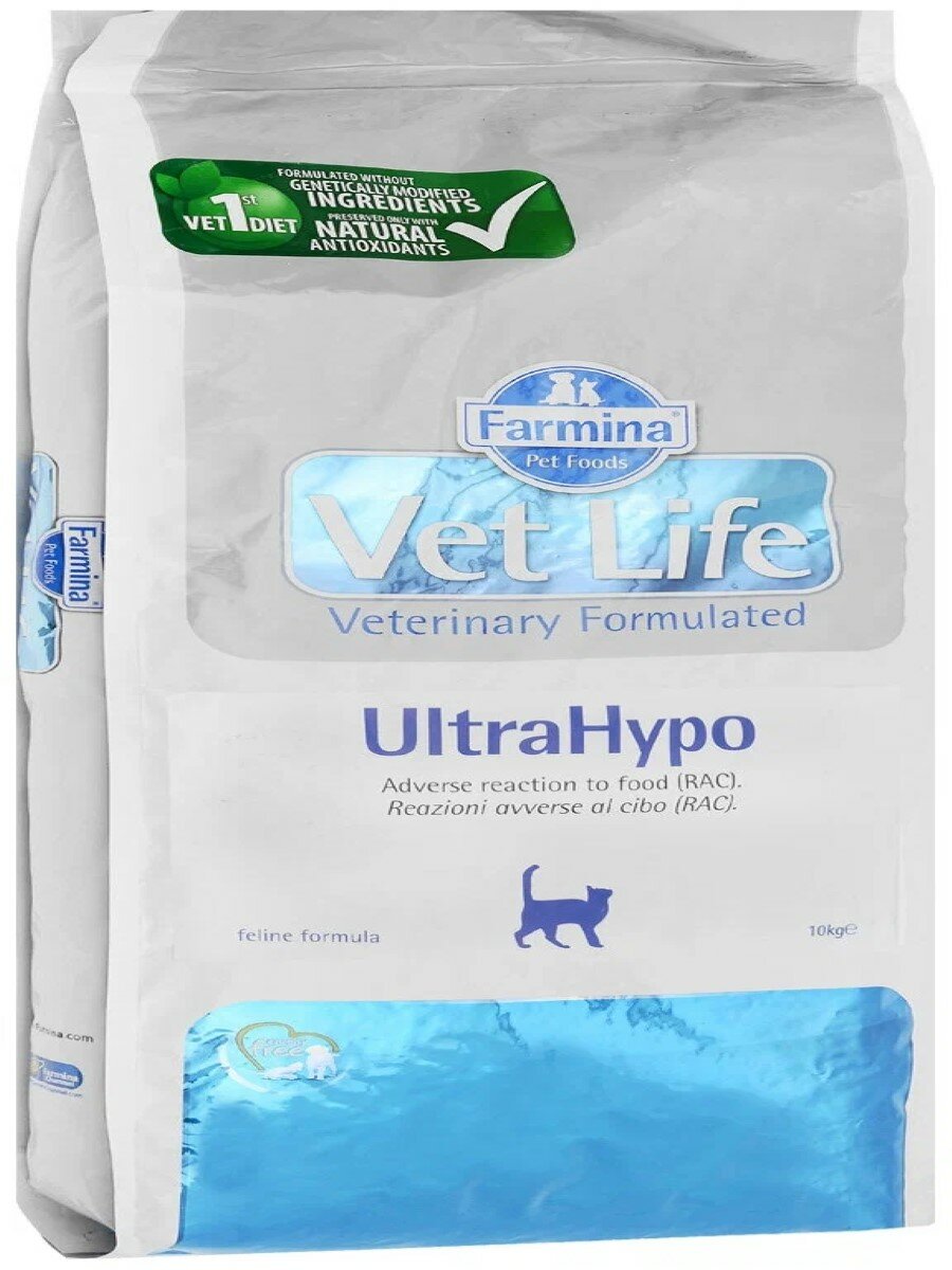 Корм Farmina Vet Life UltraHypo для кошек при пищевой аллергии и непереносимости с ярко выраженной гиперчувсвтельностью, 10 кг