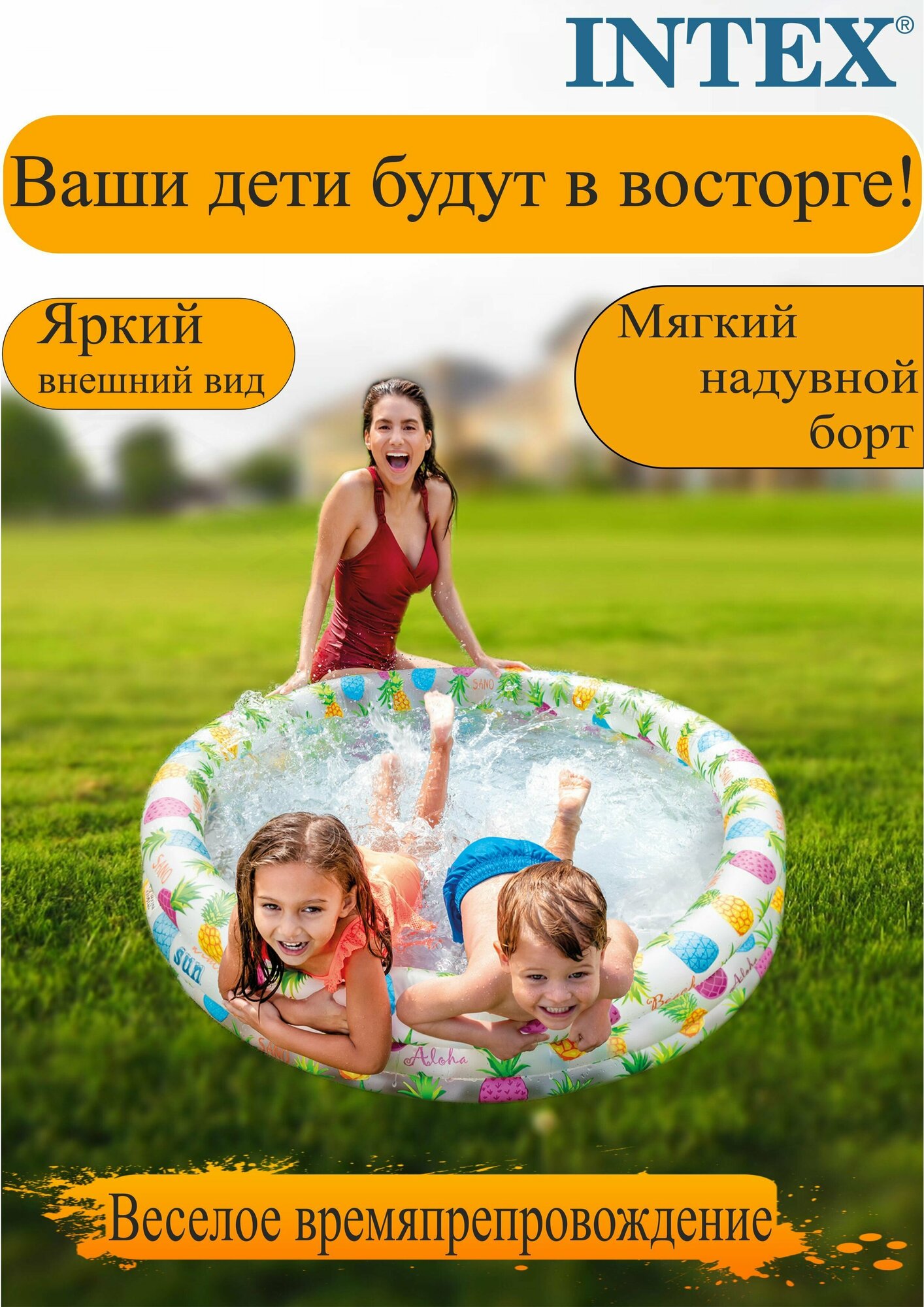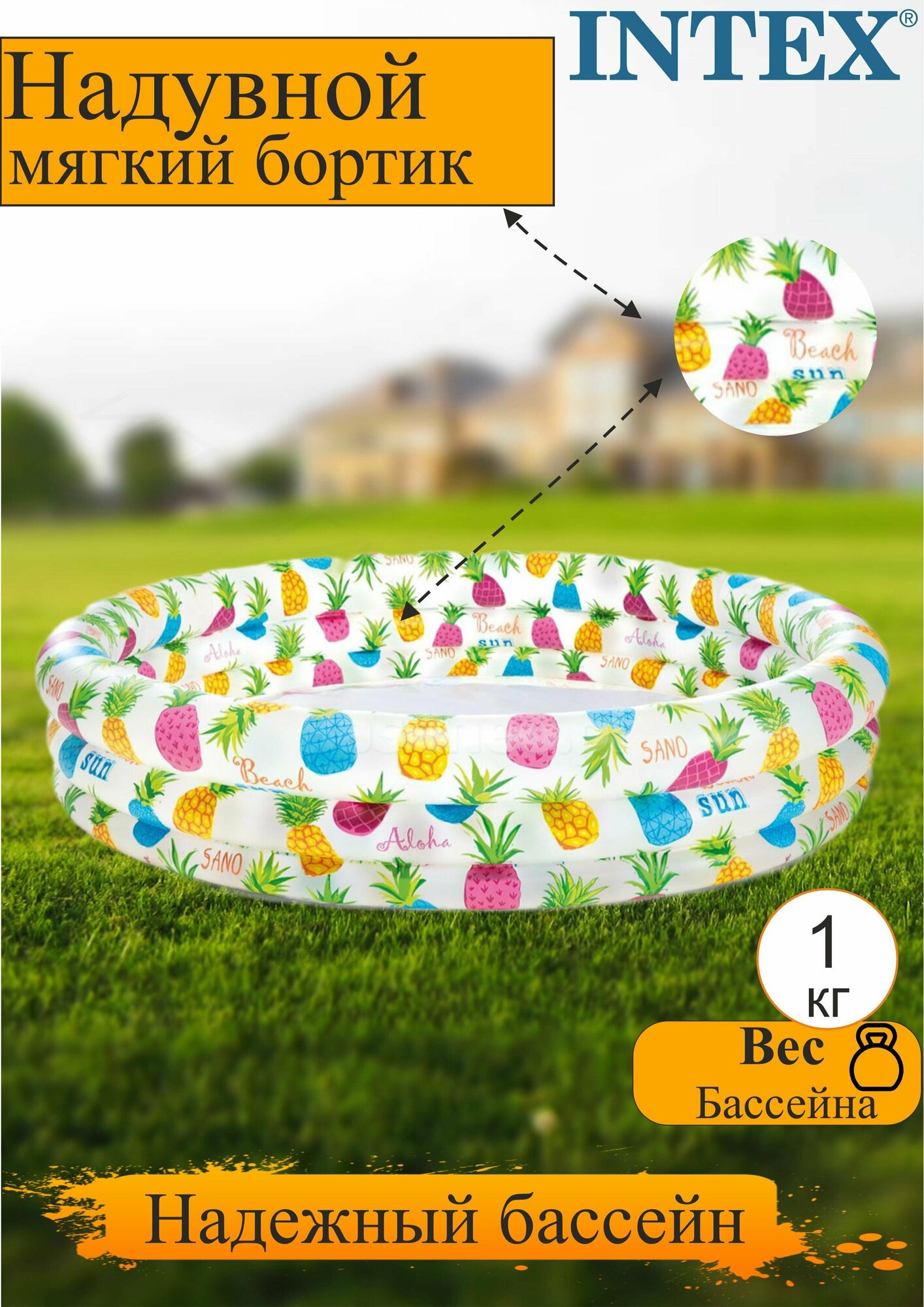 Бассейн INTEX, ананасовый рисунок, от 2 лет, 132х28 см (И59431)