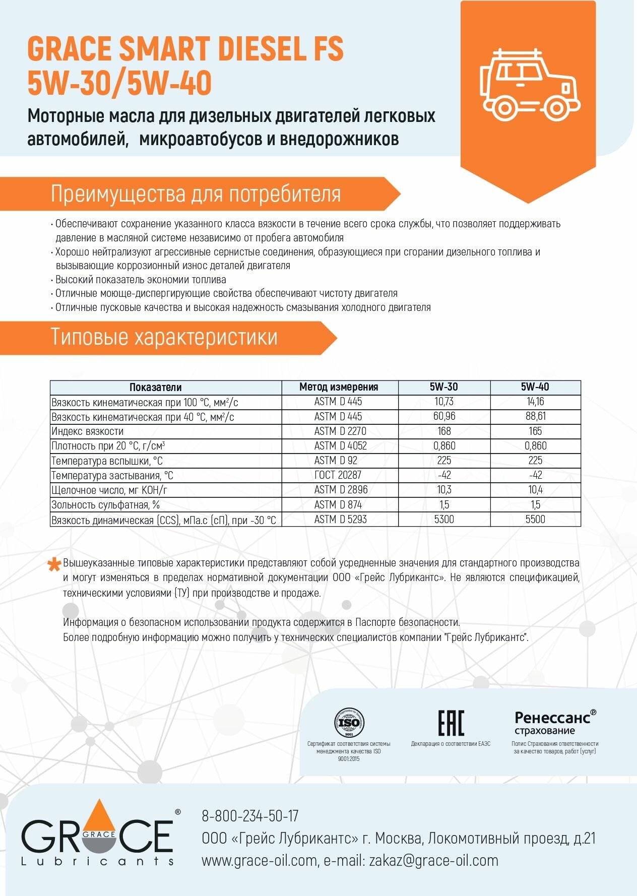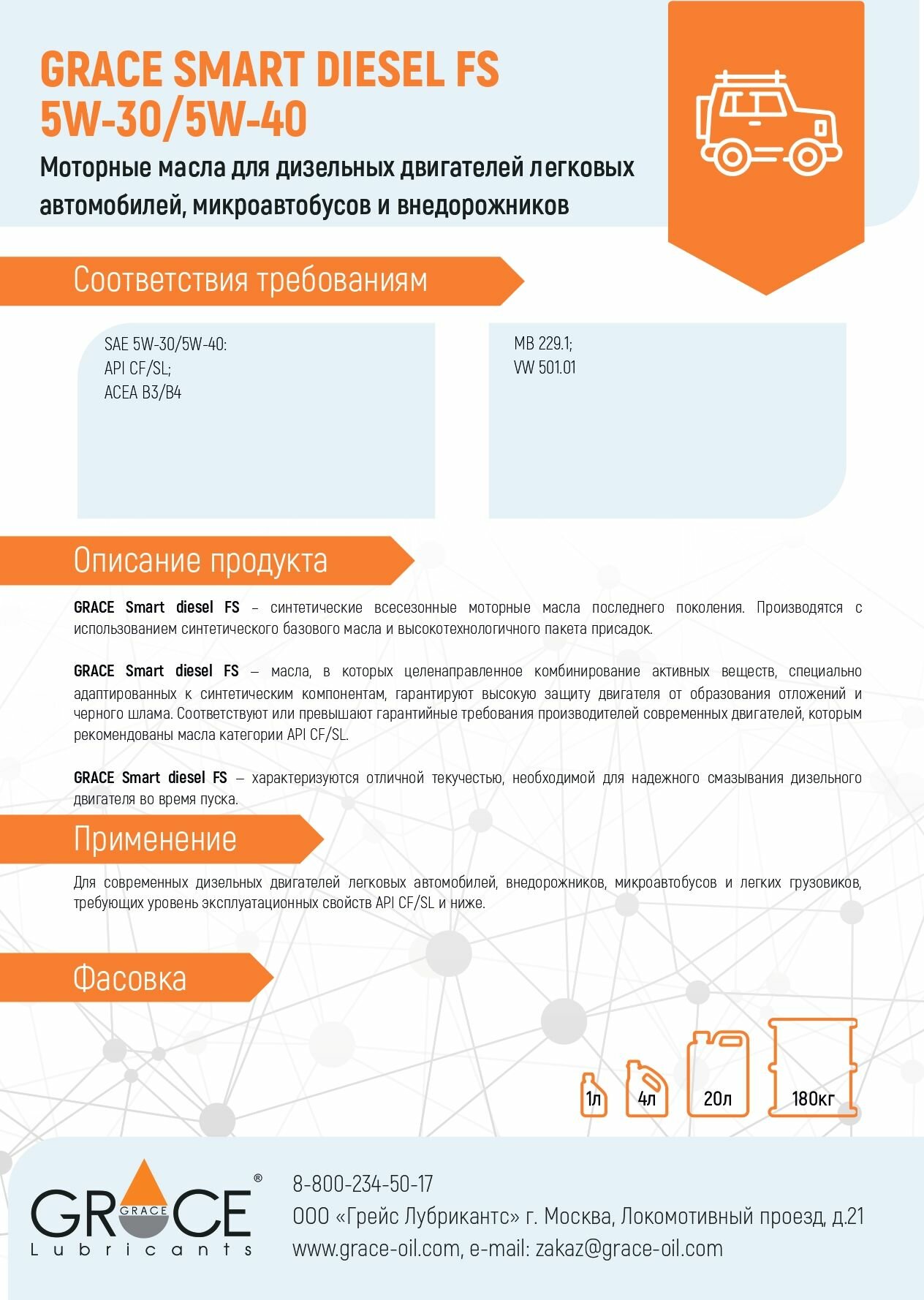 СохранитьGRACE-OIL 4603728811901 Масо дизеьное Smart Diesel FS 5W40 синт.4 GRACE интересное: