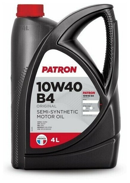 PATRON 10W40 B4 4L ORIGINAL Масло моторное полусинтетическое 4л-для легковых автомобилей ACEA A3/B4, API SN/CF, MB 229.1, RENAULT RN0700, VW 501.01/505.00 1шт