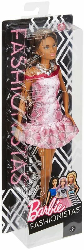 Купить Кукла Barbie Игра с модой, 29 см, FBR37 брюнетка в розовом змеином платье