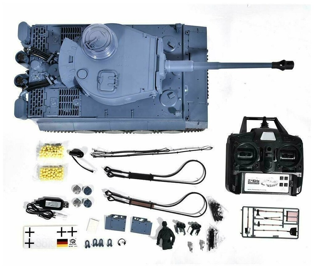 Танки, амфибии и военная техника Heng Long Радиоуправляемый танк Heng Long German Tiger V7.0 масштаб 1:16 2.4G - 3818-1-V7