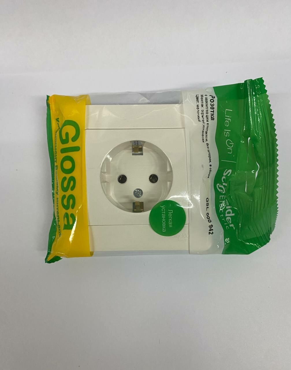 Купить Розетка 1-м СП Glossa 16А IP20 250В с заземления. в сборе молочный. SchE GSL000942