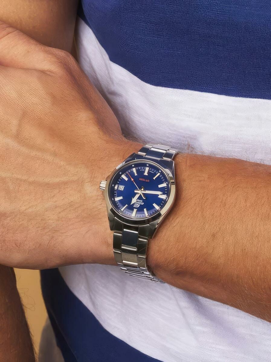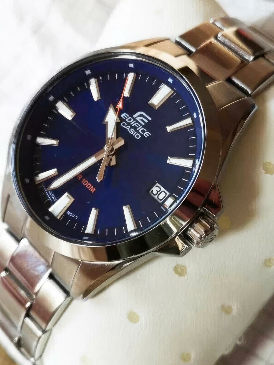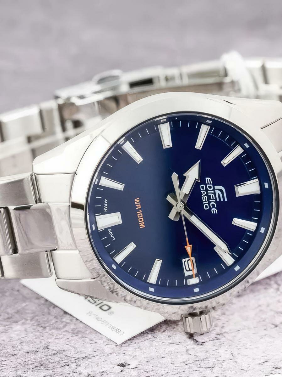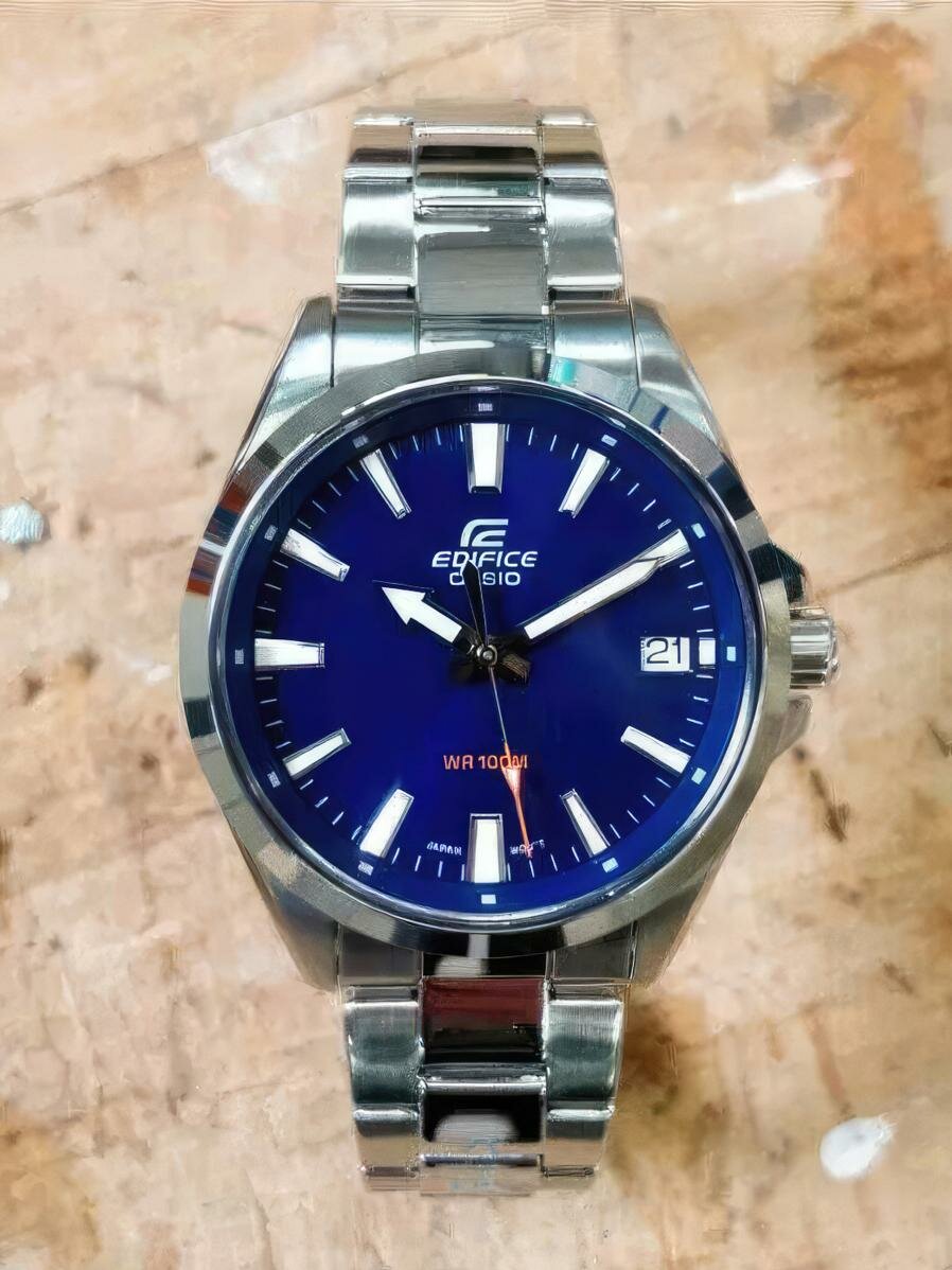 | Отзыв: | Долго выбирал между ними и моделью MTS-100D-2a. Но подержав в руках обе модели и померив их, однозначно остановился на Edifice. Они и внешне и на ощупь выглядят качественнее и богаче, браслет с литыми звеньями меньше цепляет волосы, водонепроницаемось wr100 белее чем достаточная для ежедневной эксплуатации. Ещё немаловажно, что задняя крышка на резьбе, а не "хлопушка" и регулировочная головка для настройки даты и времени на резьбе. Стрелки и метки с люминесцентным покрытием тоже можно отнести к плюсам. Очень качественно все сделано. Минималистичный, но очень красивый дизайн, особенно с синим циферблатом. |