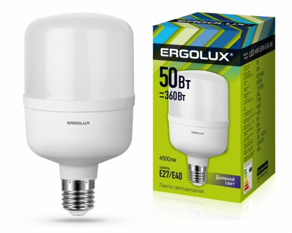 Купить Лампочка ERGOLUX LED-HW-50W-E40-6K PRO 50Вт, 6500К, E40, белый