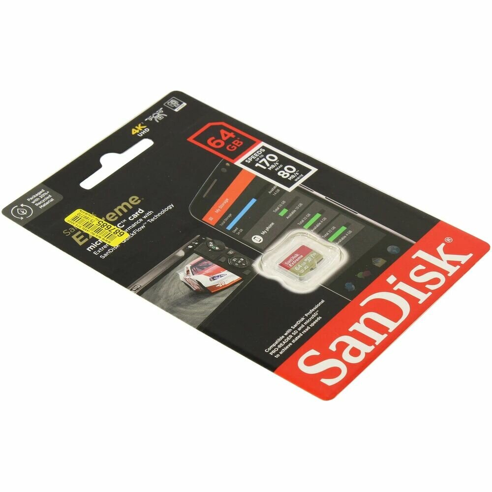 Карта памяти SanDisk microSDXC Extreme UHS-I V30 U3 A2 (170/80MB/s) 64GB