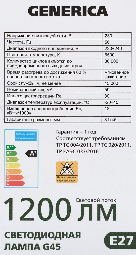Ниже Вы можете прочитать отзывы на GENERICA Лампа светодиодная GENERICA G45, 12 Вт, шар, 6500 К, E27 230 В, LL-G45-12-230-65-E27-G, ознакомится с подробными характеристиками, посмотреть интересные обзоры и фотографии на GENERICA Лампа светодиодная GENERICA G45, 12 Вт, шар, 6500 К, E27 230 В, LL-G45-12-230-65-E27-G.