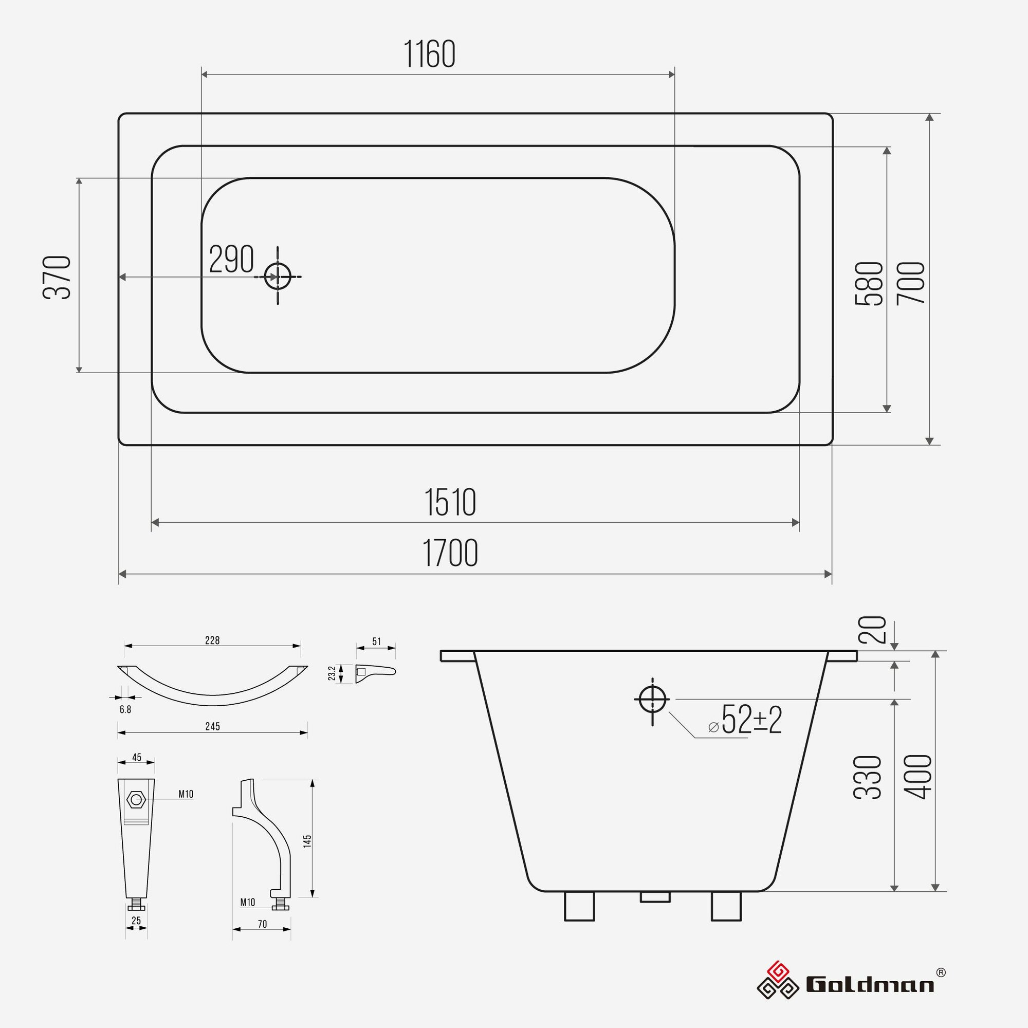 Чугунная ванна Goldman Classic 170x70x40 интересное: