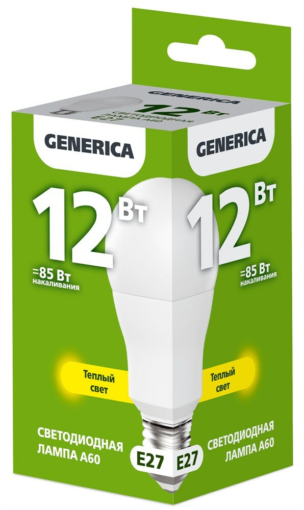Ниже Вы можете прочитать отзывы на Светодиодная лампа GENERICA LL-A60-12-230-30-E27-G, ознакомится с подробными характеристиками, посмотреть интересные обзоры и фотографии на Светодиодная лампа GENERICA LL-A60-12-230-30-E27-G.