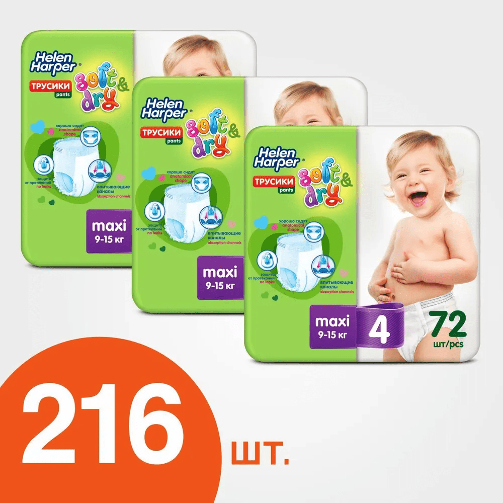 Трусики подгузники для малышей Helen Harper Soft & Dry размер 4, 9-15 кг, 72 шт, 3 уп интересное: