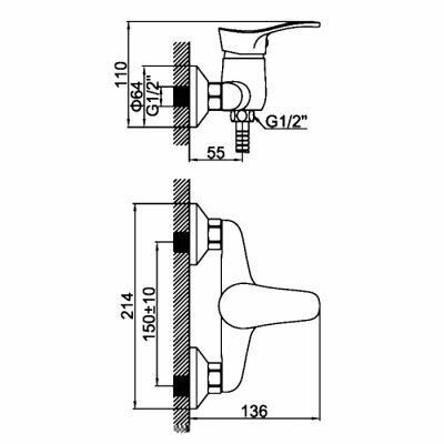 Смеситель для душа, карт. 35мм Ledeme, 1/10; L2014