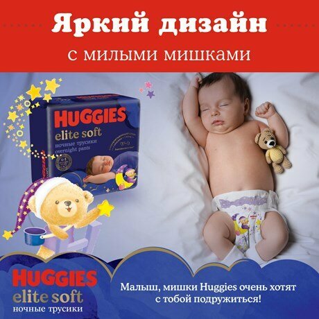 Трусики-подгузники ночные Huggies Elite soft (6-11кг) 23шт. Huggies 7516262 интересное: