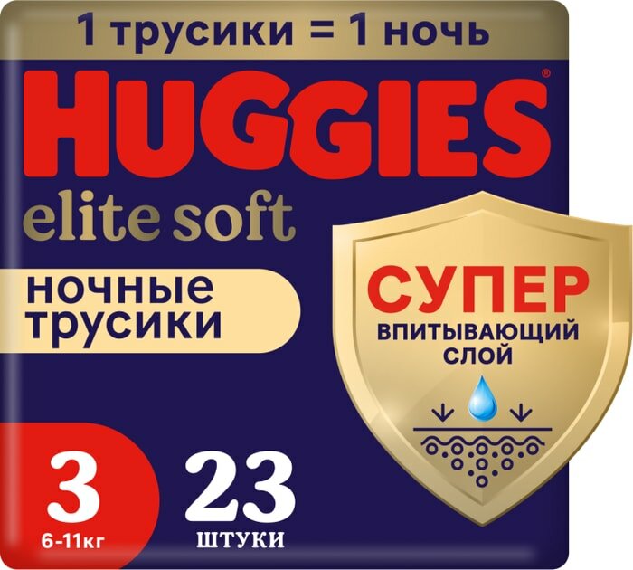 Трусики-подгузники ночные Huggies Elite soft (6-11кг) 23шт. 7516262