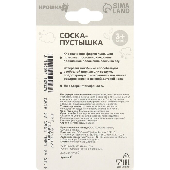 | Материал пустышки | латекс |