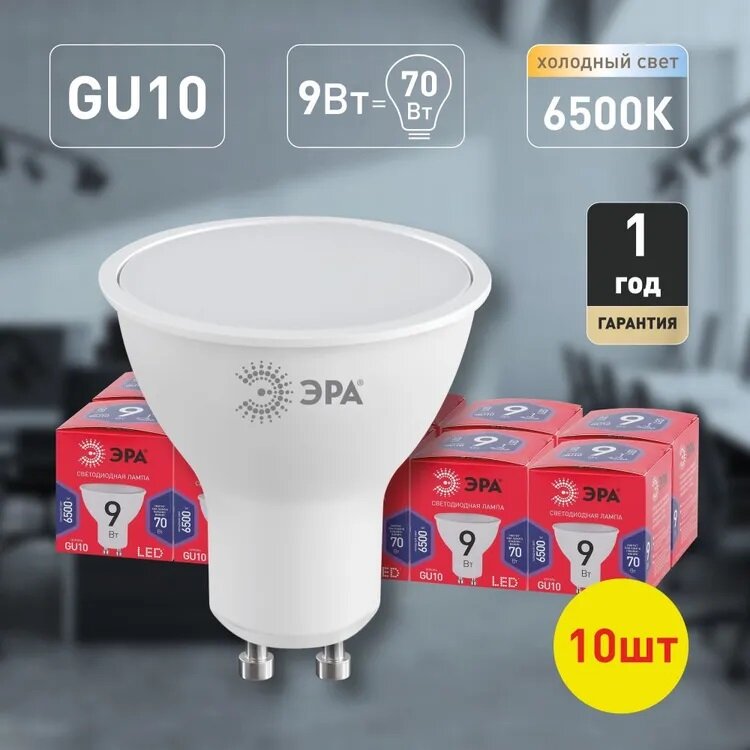 Лампочка светодиодная ЭРА RED LINE LED MR16-9W-865-GU10 R GU10 9 Вт софит холодный дневной свет арт. Б0045352 (1 шт.)
